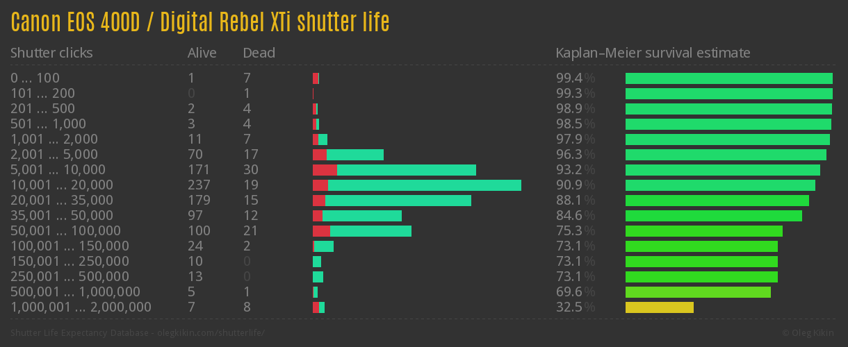 Canon EOS 400D / Digital Rebel XTi Shutter Life