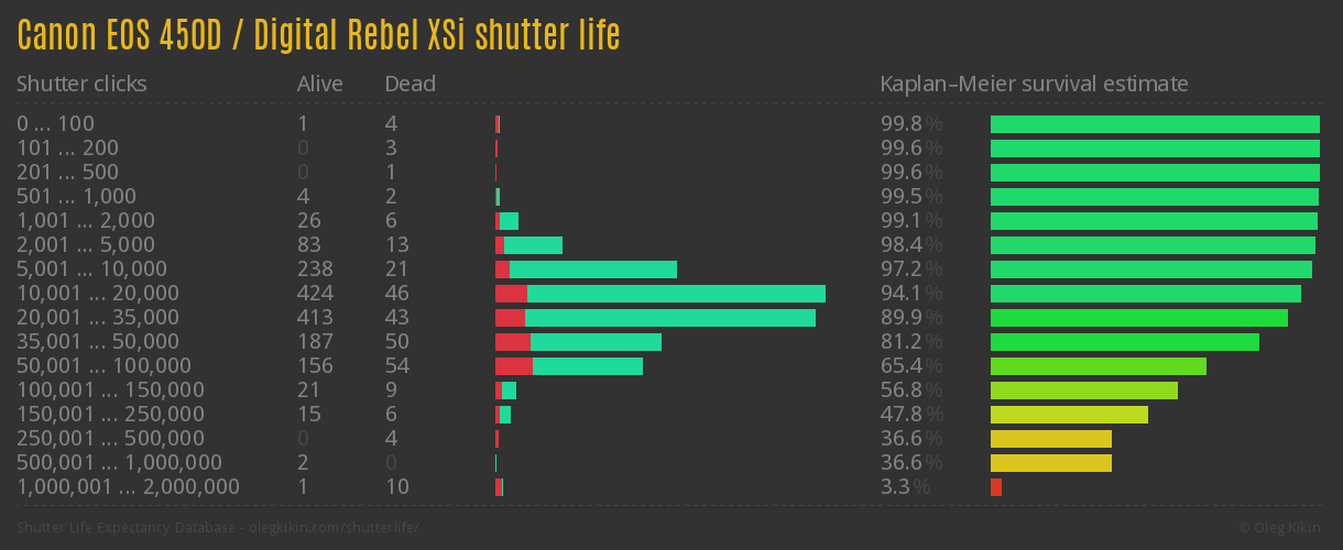 Canon EOS 450D / Digital Rebel XSi Shutter Life