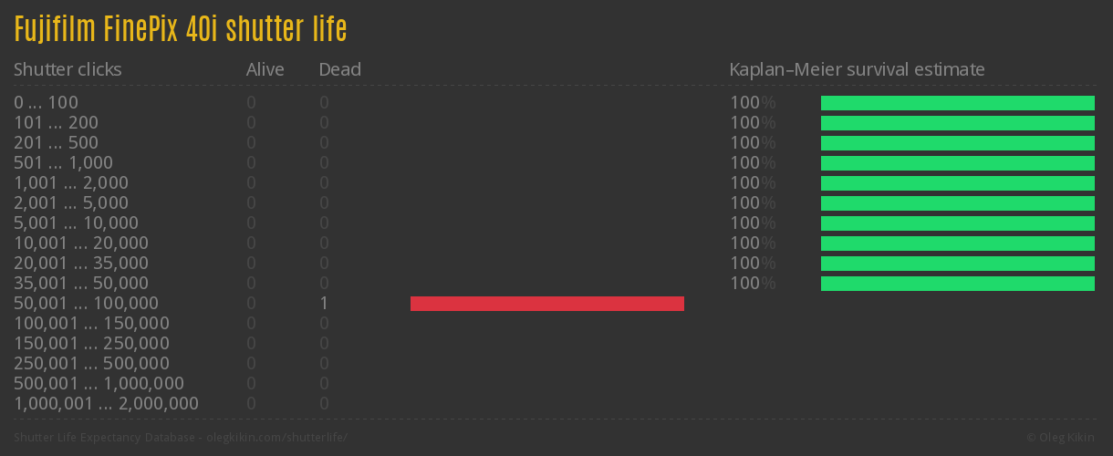 Direct link to this page: Fujifilm FinePix 40iAverage number of actuations after which shutter is still alive: no data