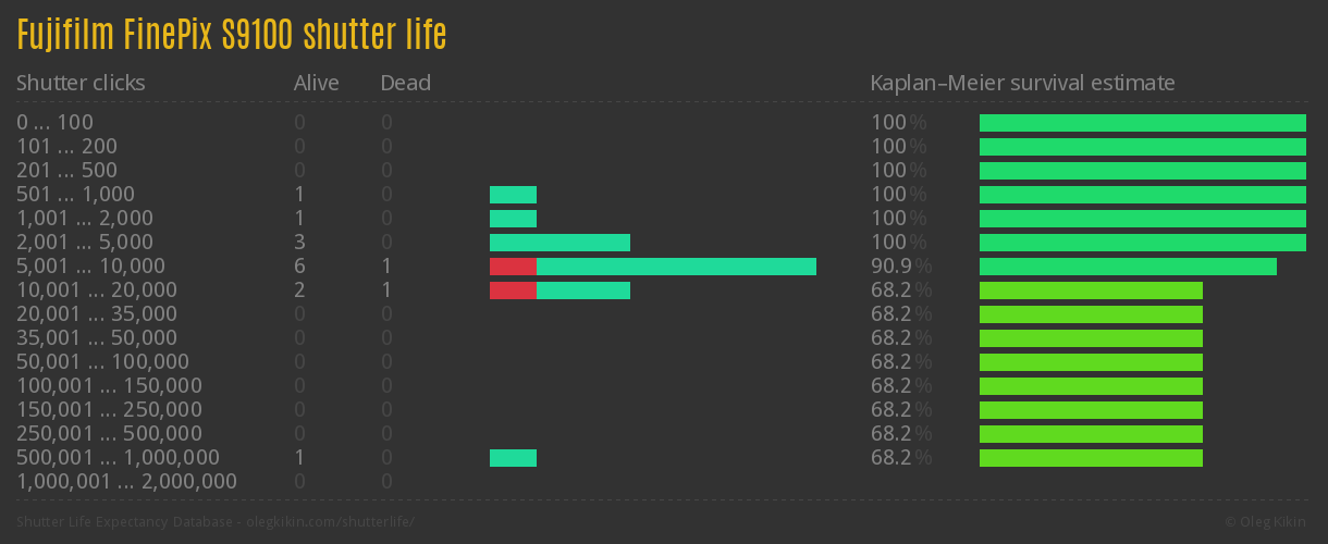Direct link to this page: Fujifilm FinePix S9100Average number of actuations after which shutter is still alive: 67,195.1