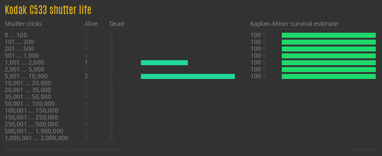 Direct link to this page: Kodak C533Average number of actuations after which shutter is still alive: 5,766.7
