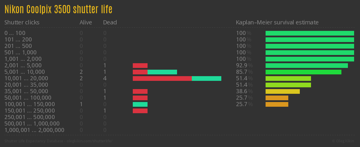 Direct link to this page: Nikon Coolpix 3500Average number of actuations after which shutter is still alive: 38,100.0