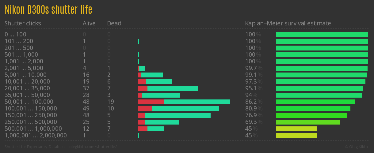 Direct link to this page: Nikon D300sAverage number of actuations after which shutter is still alive: 136,812.0