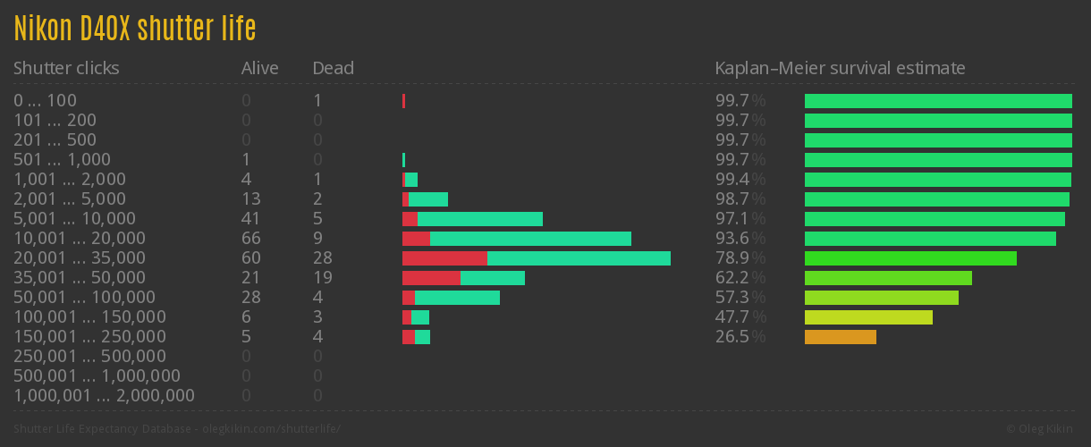Direct link to this page: Nikon D40XAverage number of actuations after which shutter is still alive: 29,882.6