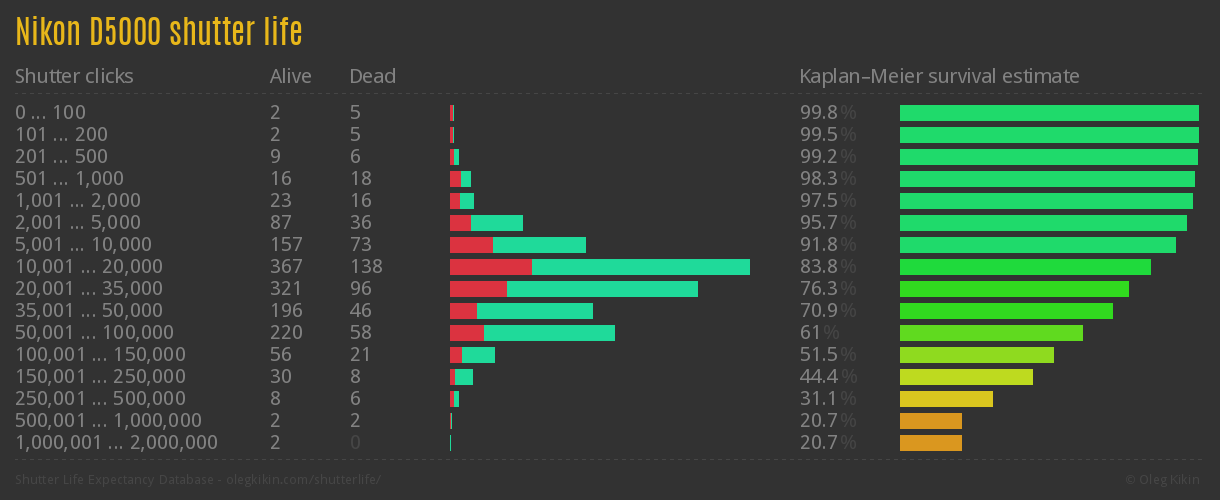 Direct link to this page: Nikon D5000Average number of actuations after which shutter is still alive: 43,058.0