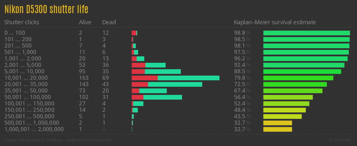 Direct link to this page: Nikon D5300Average number of actuations after which shutter is still alive: 39,414.2