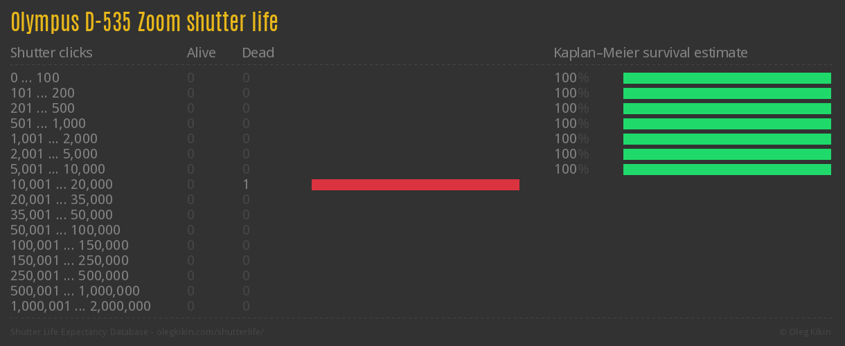 Direct link to this page: Olympus D-535 ZoomAverage number of actuations after which shutter is still alive: no data