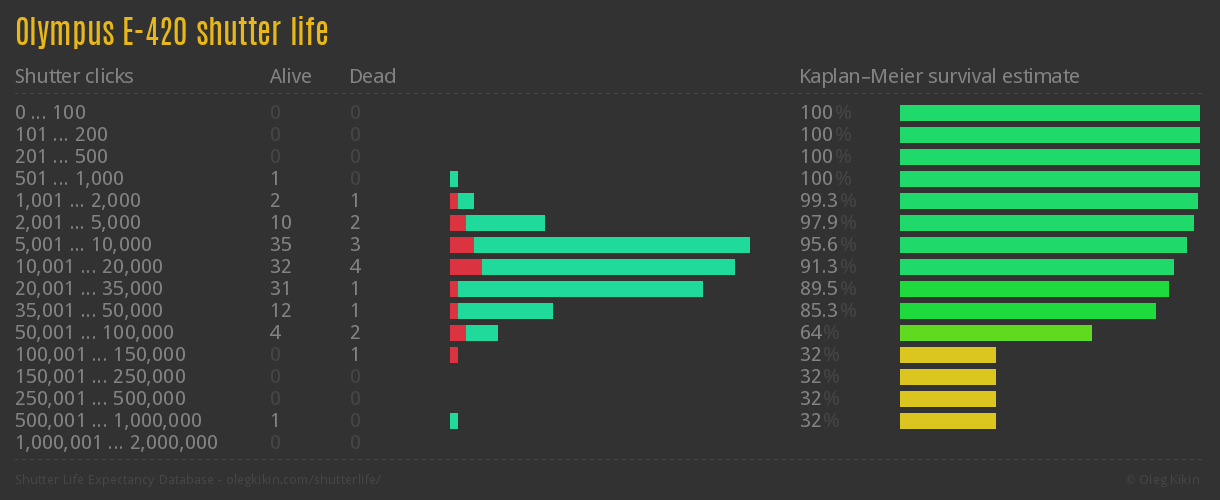 Direct link to this page: Olympus E-420Average number of actuations after which shutter is still alive: 26,140.1