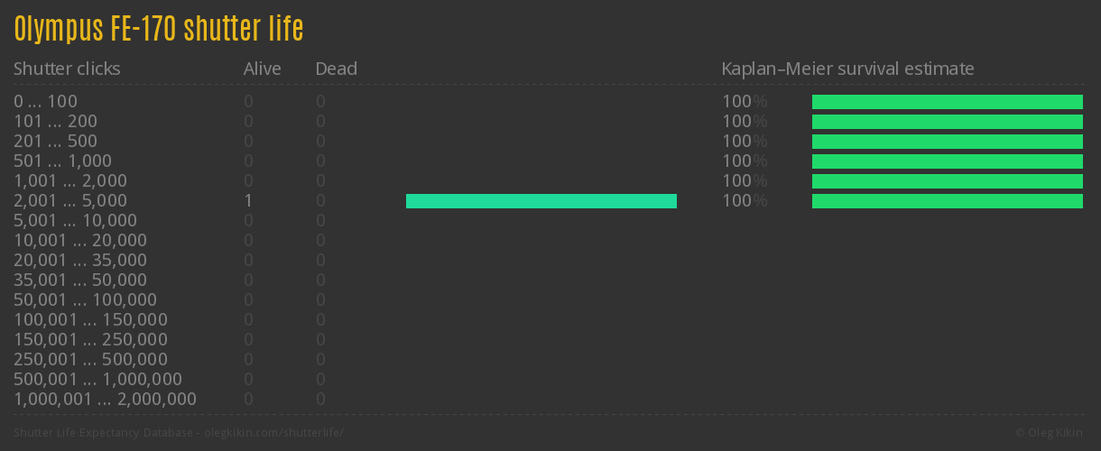 Direct link to this page: Olympus FE-170Average number of actuations after which shutter is still alive: 3,000.0
