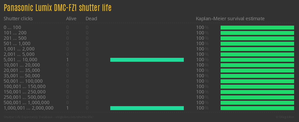 Direct link to this page: Panasonic Lumix DMC-FZ1Average number of actuations after which shutter is still alive: 549,737.5