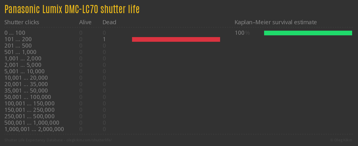 Direct link to this page: Panasonic Lumix DMC-LC70Average number of actuations after which shutter is still alive: no data