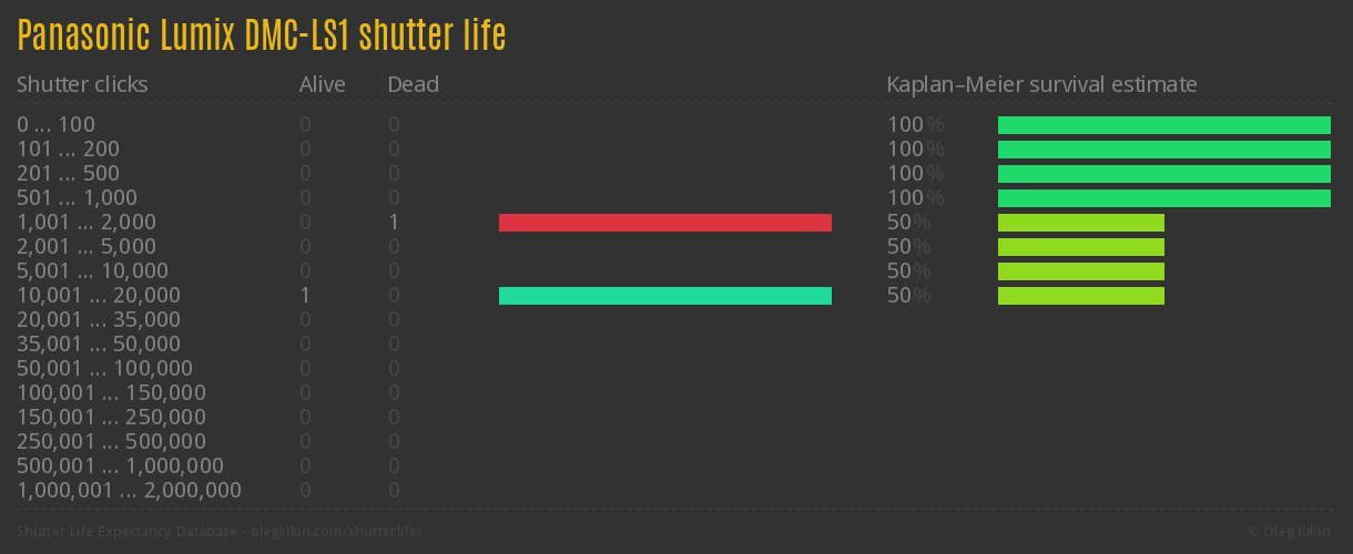 Direct link to this page: Panasonic Lumix DMC-LS1Average number of actuations after which shutter is still alive: 10,387.0