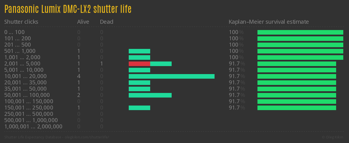 Direct link to this page: Panasonic Lumix DMC-LX2Average number of actuations after which shutter is still alive: 38,383.2