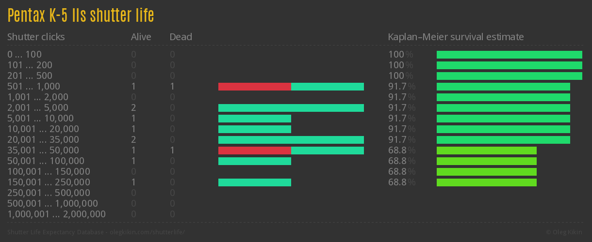 Direct link to this page: Pentax K-5 IIsAverage number of actuations after which shutter is still alive: 47,145.6