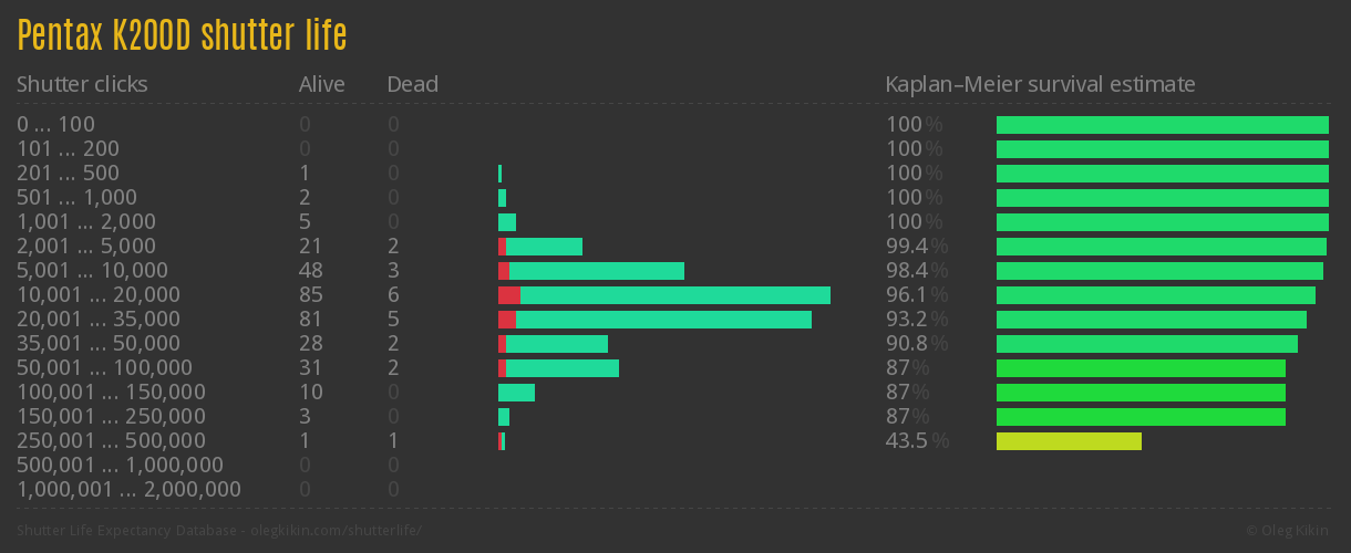 Direct link to this page: Pentax K200DAverage number of actuations after which shutter is still alive: 29,498.1