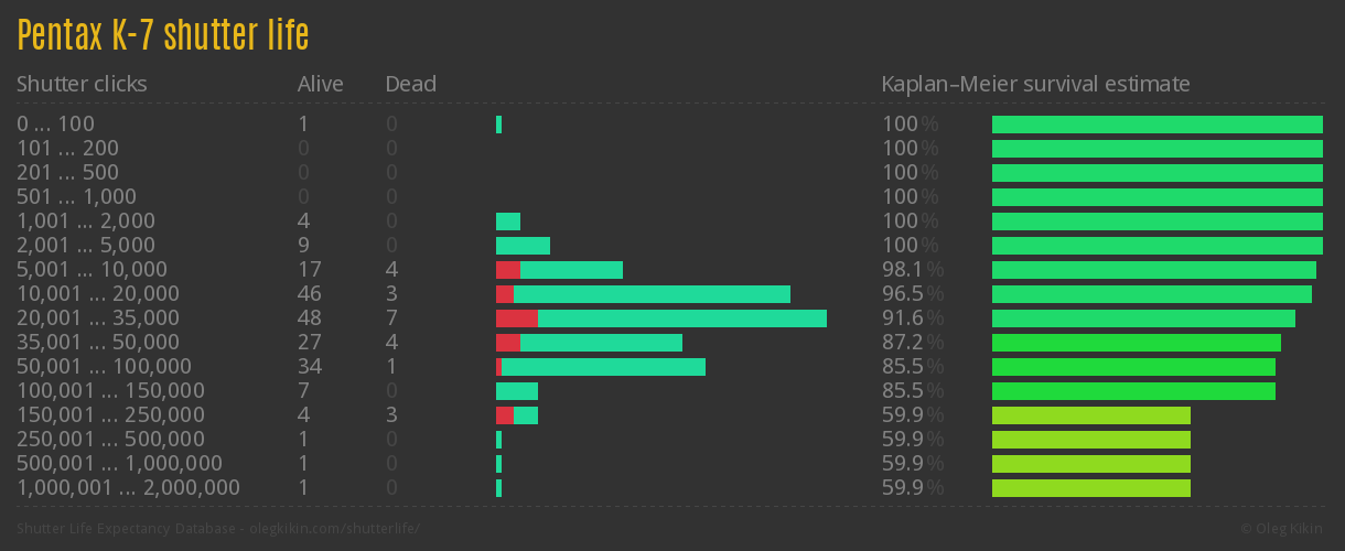 Direct link to this page: Pentax K-7Average number of actuations after which shutter is still alive: 47,713.9