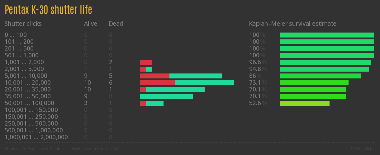 Direct link to this page: Pentax K-30Average number of actuations after which shutter is still alive: 27,197.5