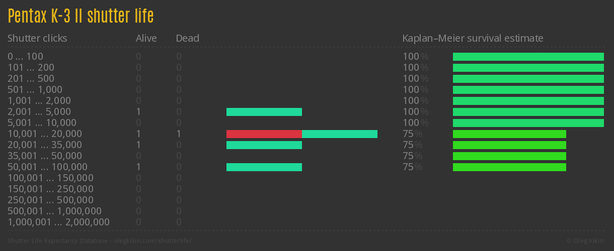 Direct link to this page: Pentax K-3 IIAverage number of actuations after which shutter is still alive: 60,626.5