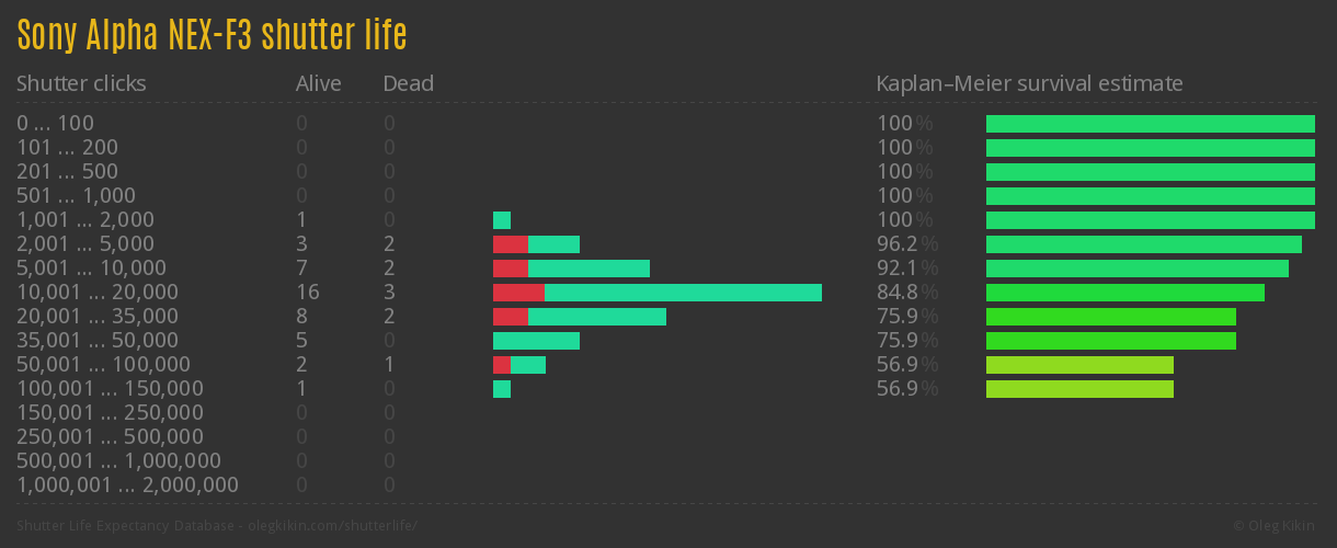 Direct link to this page: Sony Alpha NEX-F3Average number of actuations after which shutter is still alive: 23,143.9