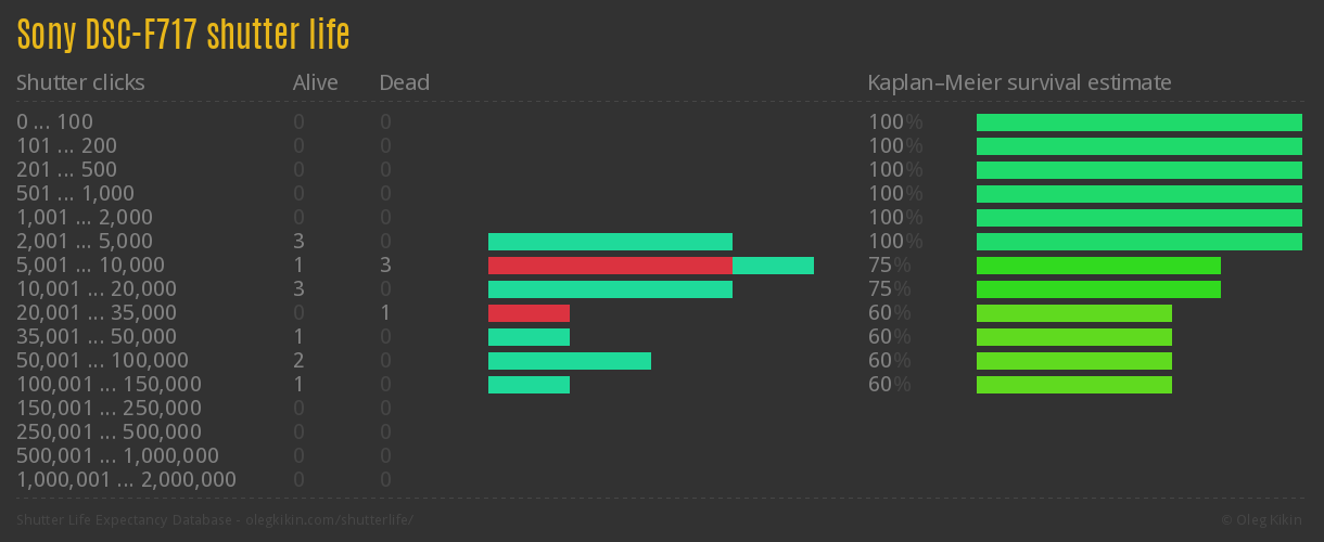 Direct link to this page: Sony DSC-F717Average number of actuations after which shutter is still alive: 32,036.9