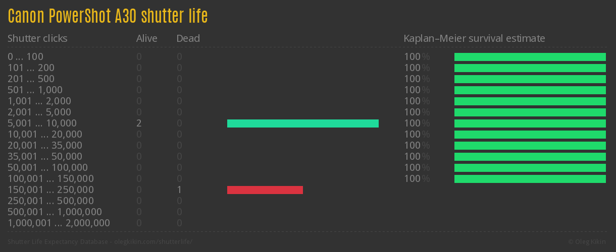 Canon PowerShot A30 Shutter Life