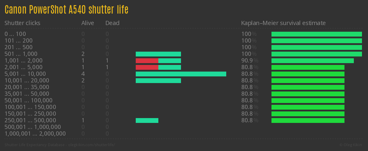 Canon PowerShot A540 Shutter Life