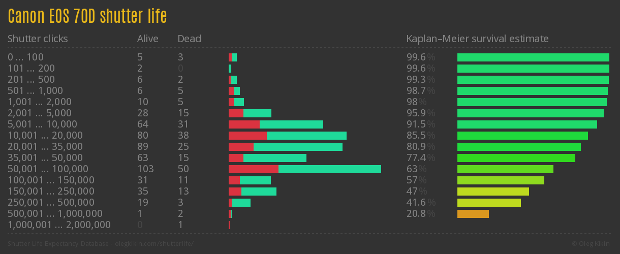 Direct link to this page: Canon EOS 70DAverage number of actuations after which shutter is still alive: 63,689.0