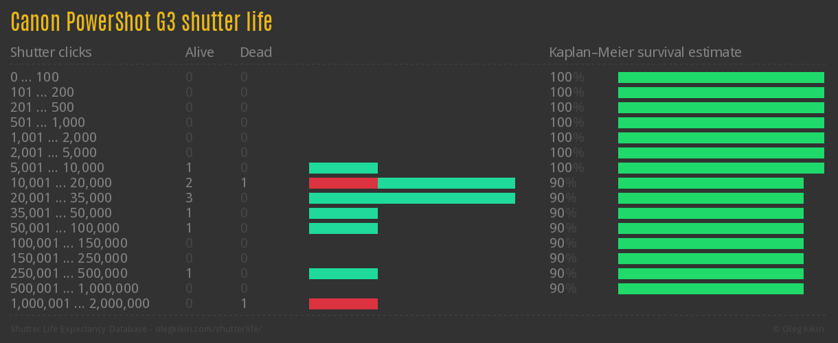 Direct link to this page: Canon PowerShot G3Average number of actuations after which shutter is still alive: 58,293.7