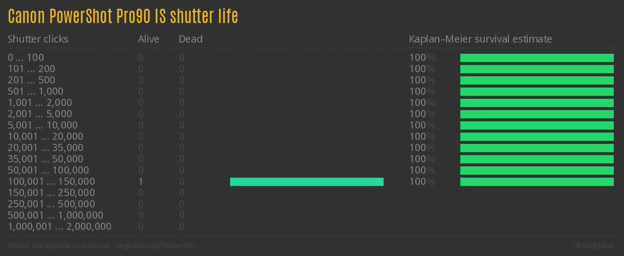 Direct link to this page: Canon PowerShot Pro90 ISAverage number of actuations after which shutter is still alive: 120,000.0