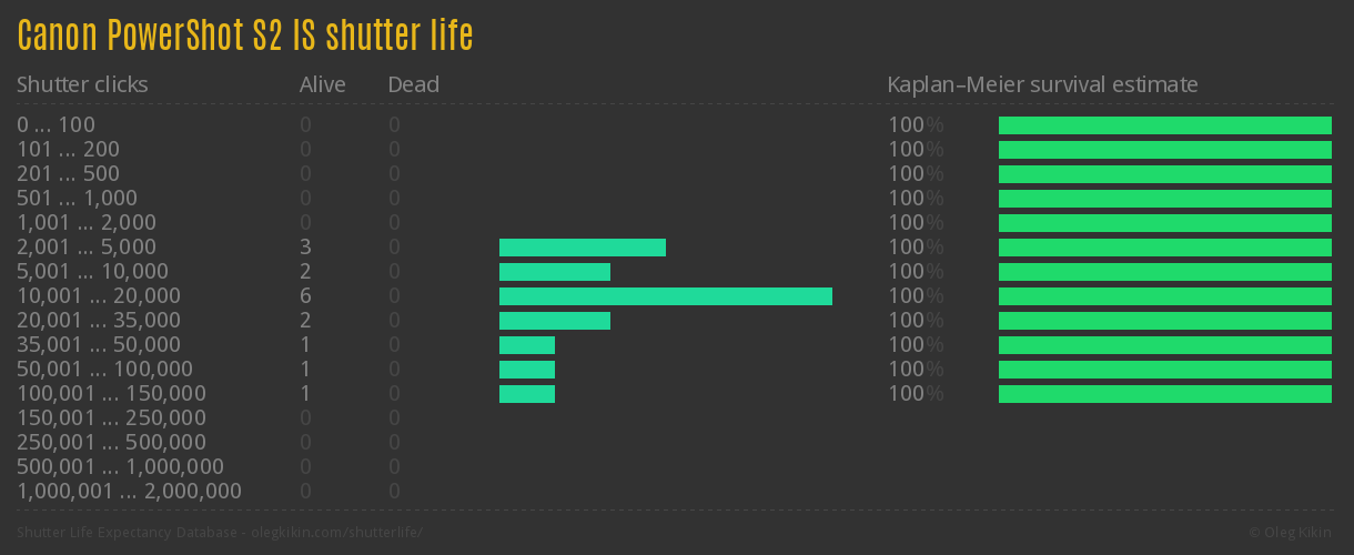 Direct link to this page: Canon PowerShot S2 ISAverage number of actuations after which shutter is still alive: 23,138.2