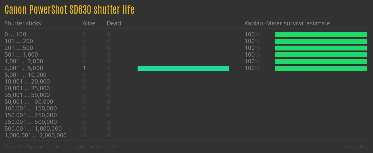 Direct link to this page: Canon PowerShot SD630Average number of actuations after which shutter is still alive: 3,768.0