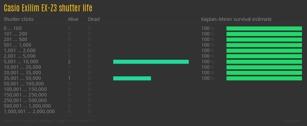 Direct link to this page: Casio Exilim EX-Z3Average number of actuations after which shutter is still alive: 18,166.7