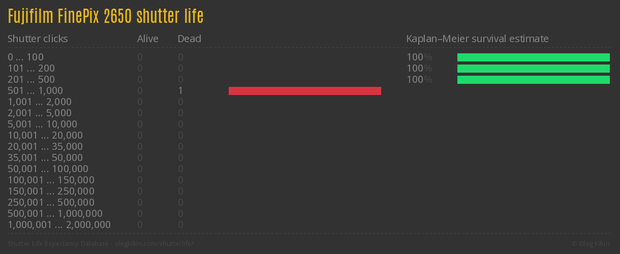 Direct link to this page: Fujifilm FinePix 2650Average number of actuations after which shutter is still alive: no data
