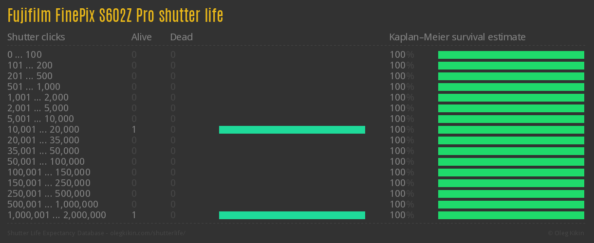Direct link to this page: Fujifilm FinePix S602Z ProAverage number of actuations after which shutter is still alive: 510,028.0