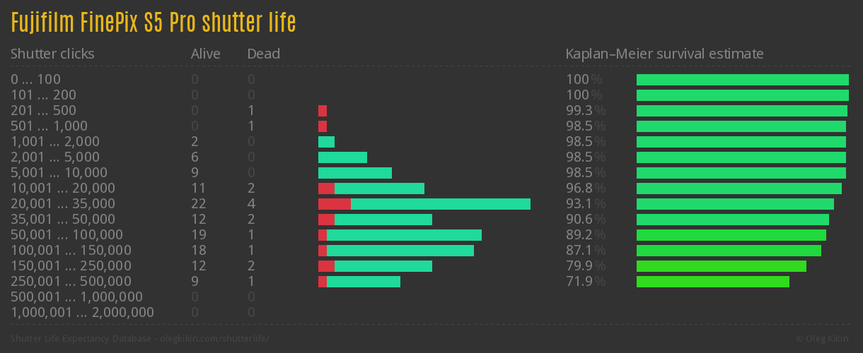 Direct link to this page: Fujifilm FinePix S5 ProAverage number of actuations after which shutter is still alive: 87,345.3