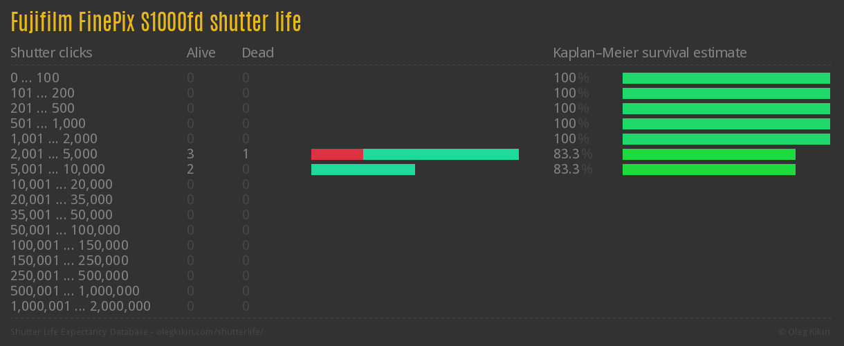 Direct link to this page: Fujifilm FinePix S1000fdAverage number of actuations after which shutter is still alive: 5,208.2