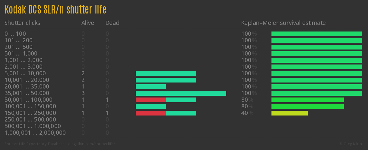 Direct link to this page: Kodak DCS SLR/nAverage number of actuations after which shutter is still alive: 49,757.1