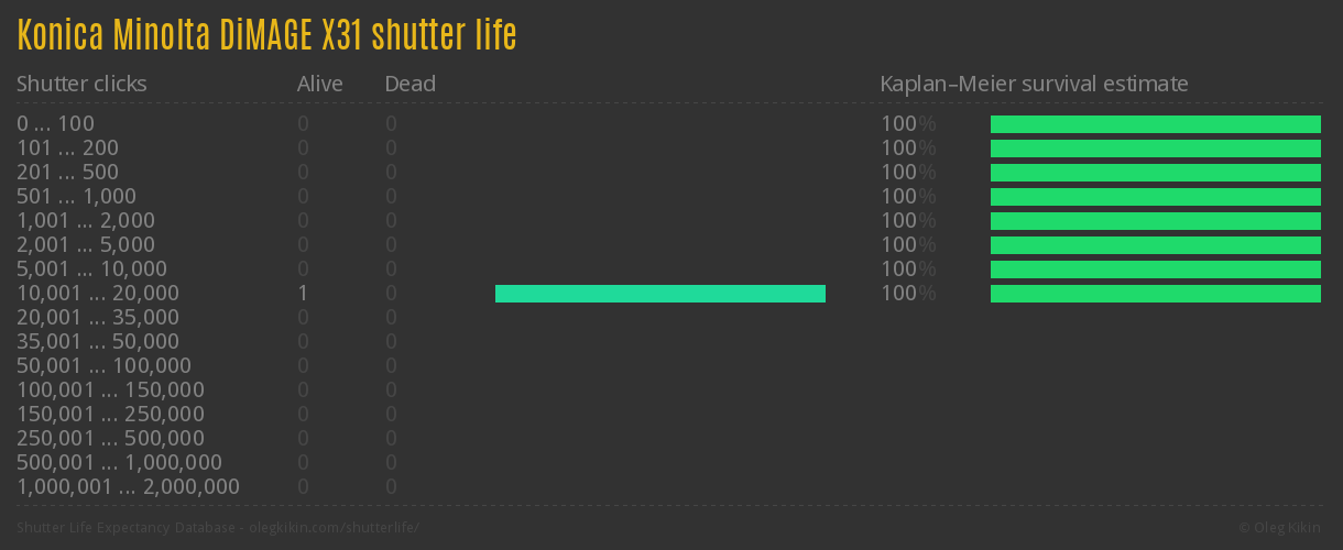 Direct link to this page: Konica Minolta DiMAGE X31Average number of actuations after which shutter is still alive: 14,000.0