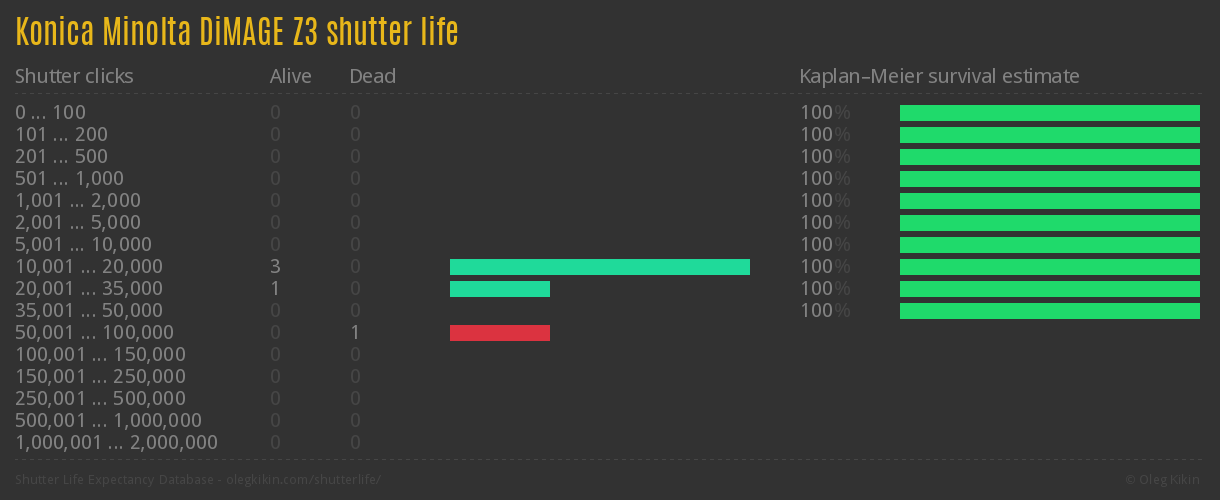 Direct link to this page: Konica Minolta DiMAGE Z3Average number of actuations after which shutter is still alive: 20,359.0