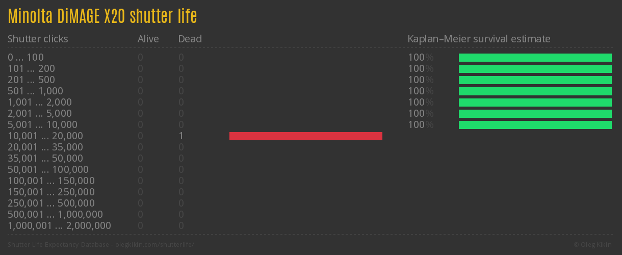 Direct link to this page: Minolta DiMAGE X20Average number of actuations after which shutter is still alive: no data