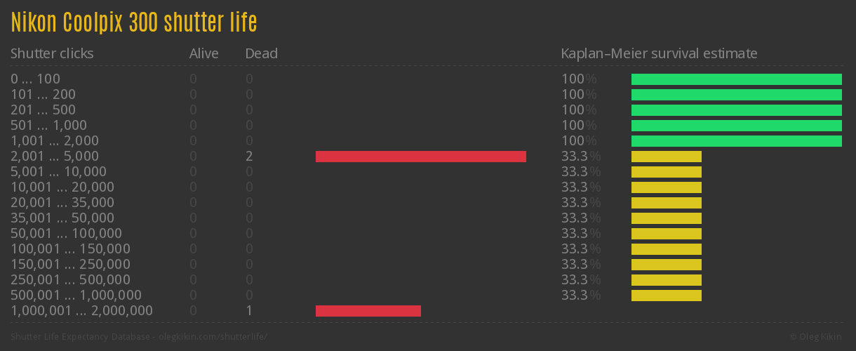 Direct link to this page: Nikon Coolpix 300Average number of actuations after which shutter is still alive: no data