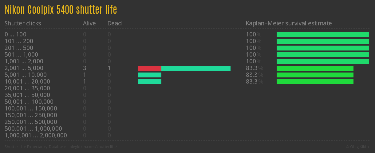 Direct link to this page: Nikon Coolpix 5400Average number of actuations after which shutter is still alive: 5,977.8