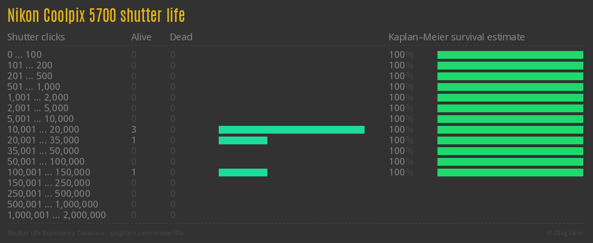Direct link to this page: Nikon Coolpix 5700Average number of actuations after which shutter is still alive: 40,000.0