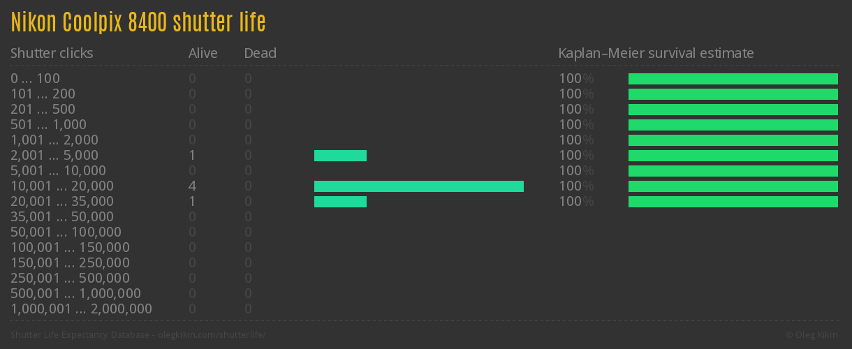 Direct link to this page: Nikon Coolpix 8400Average number of actuations after which shutter is still alive: 14,442.0