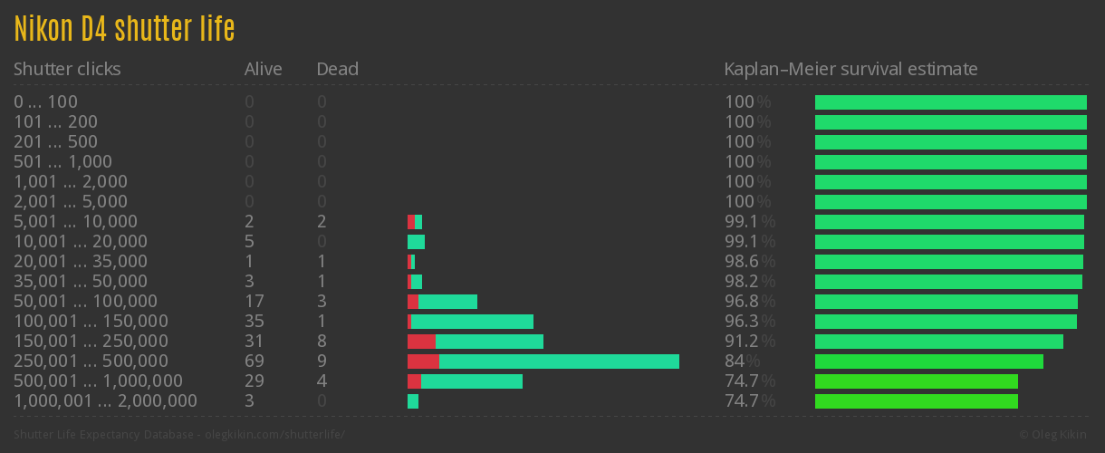 Direct link to this page: Nikon D4Average number of actuations after which shutter is still alive: 303,016.8