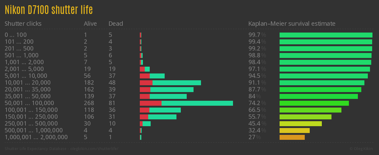 Direct link to this page: Nikon D7100Average number of actuations after which shutter is still alive: 79,936.5