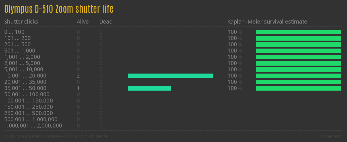Direct link to this page: Olympus D-510 ZoomAverage number of actuations after which shutter is still alive: 21,281.3