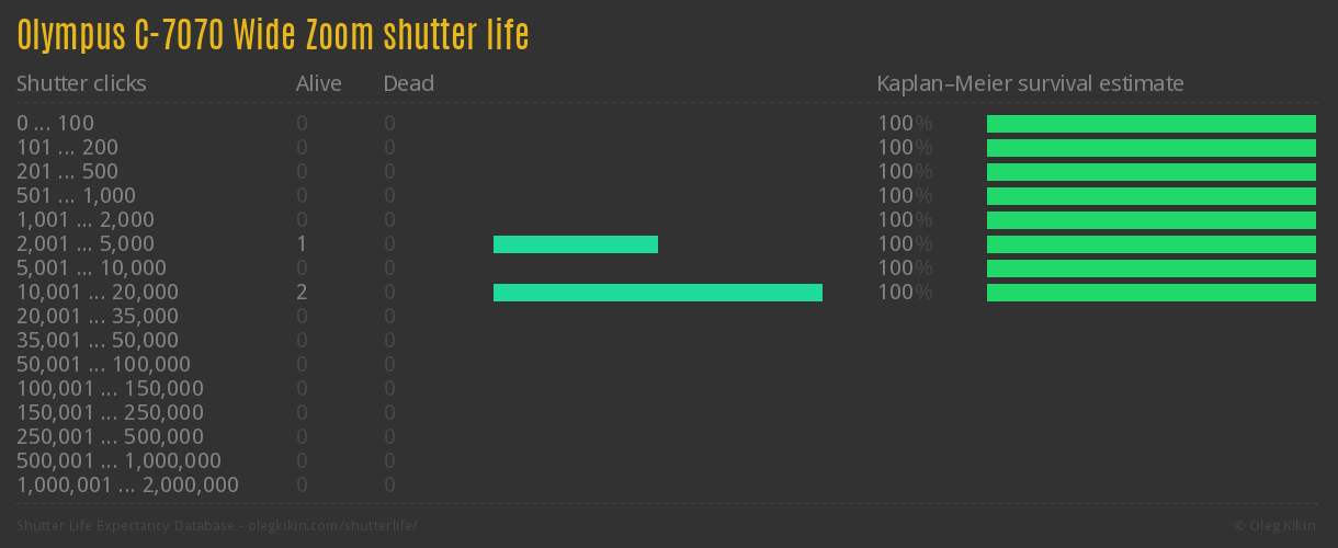 Direct link to this page: Olympus C-7070 Wide ZoomAverage number of actuations after which shutter is still alive: 10,666.7