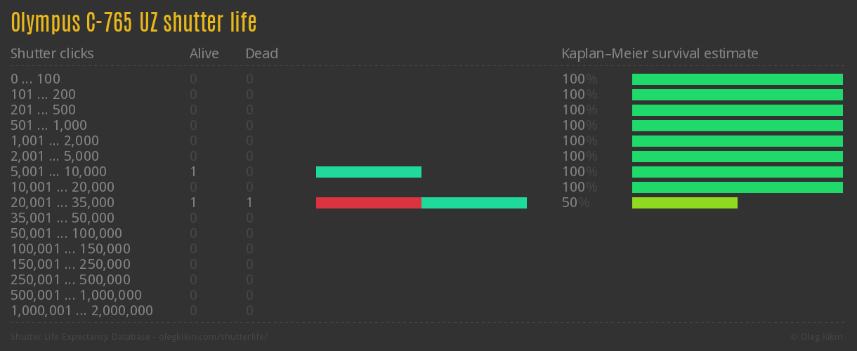 Direct link to this page: Olympus C-765 UZAverage number of actuations after which shutter is still alive: 22,500.0
