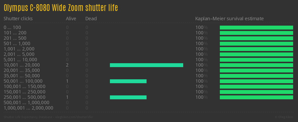 Direct link to this page: Olympus C-8080 Wide ZoomAverage number of actuations after which shutter is still alive: 95,614.5